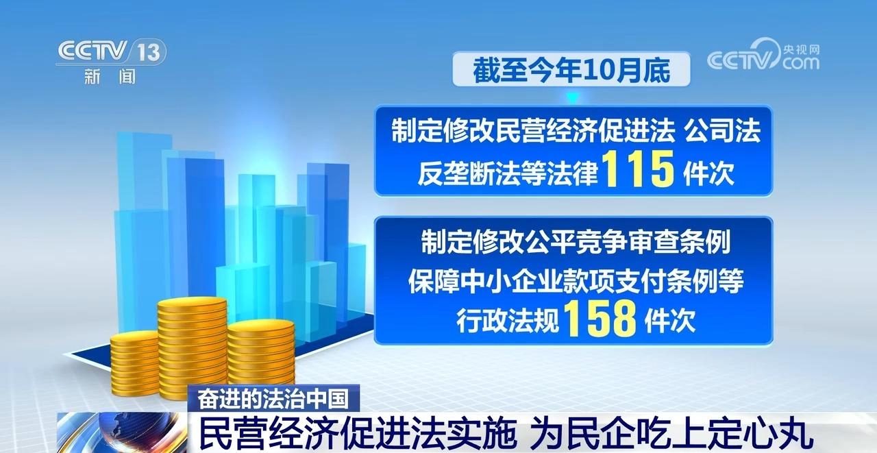 央视新闻:法治是最好的营商环境,法制环境更有利于吸引人才和财富,更有利于发展。五年来,党中央高度重视营造法治化营商环境,特别是出台了以《民营经济促进法》为代表的一系列法律法规,为广大民营企业家提供了安全感。为推动法治化营商环境营造,五年来我国进一步推进科学立法、民主立法、法治化。加强立法,以高质量立法有力保障经济社会高质量发展。截至今年10月底,已颁布或修改《民营经济促进法》、《企业法》、《反垄断法》等法律115件,颁布或修改《公平竞争审查条例》、《中小企业支付保障条例》等行政法规158件。同时,坚持法、修、废、解释同步实施,对600余部现行行政法规开展集中清理,统筹清理不平等涉商政策法律法规,为构建统一市场、推动高质量发展提供重要保障和支撑。此外,在行政服务中,“断腿断嘴”的情况已成为过去,新的经验“一站式服务”、“数据驱动”等已融入日常生活。坚持有效市场和有效政府相结合,推动统一的基本市场制度、统一的政府行为标准、统一的市场监管和执法,建设法治经济和信用经济,我国营商环境不断优化,成为世界主要经济体中营商环境改善最快、最显着的国家之一。